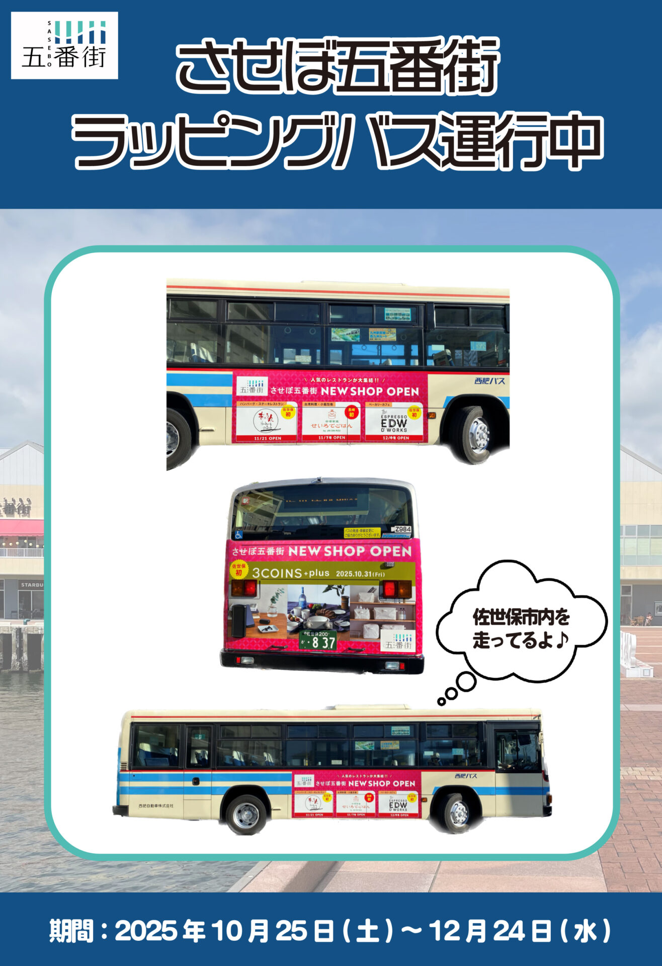 させぼ五番街ラッピングバス運行中!