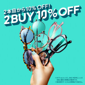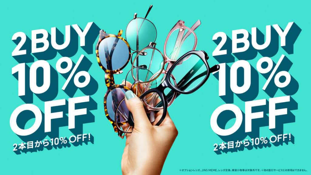 メガネやサングラスが今だけ2本目から10%OFF!