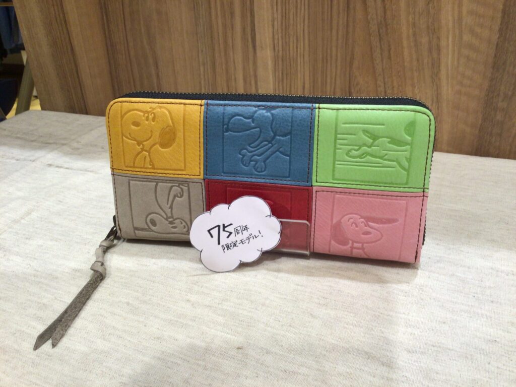 様々な年代のスヌーピーが型押しデザインされた長財布です♪